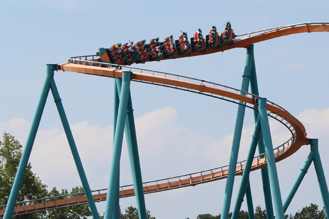 Amongst a whole mess of airtime hills, Goliath takes a break between its second and third acts to spin us through this downward spiral. I don't know why I like spirals as much as I do, but I most certainly do like spirals.