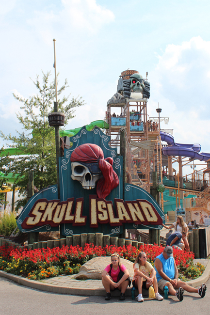 The boneyard tour group assembled in front of SFOG's Skull Island water park. "Here there be swimsuit wedgies, matey!"