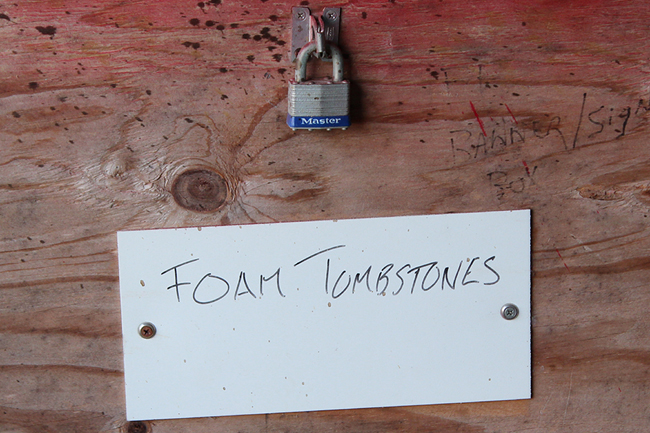 I sure wish I worked someplace where a storage cabinet had "Foam Tombstones" written on it.