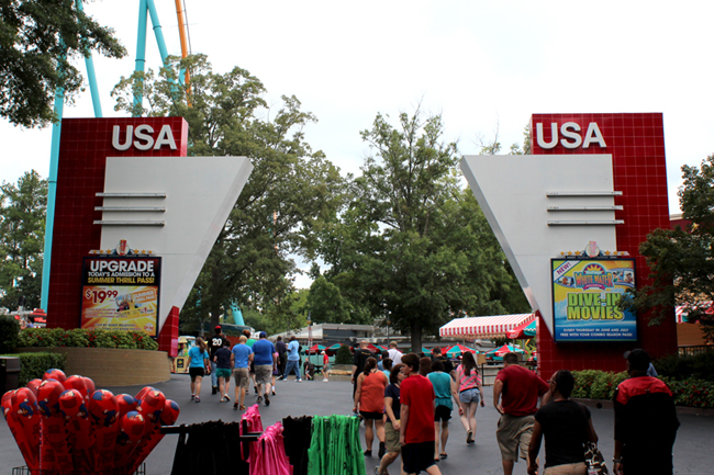 Here's one of the bolder reminders that there are still themed zones at this park. But, yeah, I mean, really, Superman: Ultimate Flight is in the "Cotton States Section," and Georgia Cyclone is in the "British Section." I guess you could argue that Georgia was one of the original British colonies, so fine, but I'm almost positive that cotton does not play a major role in the Superman mythology. It's not even in any clothing Superman wears; that's all Kryptonian space-polyester or something, right? And even if Clark Kent wears 100% cotton shirts, or socks, or briefs, that's too much of a stretch for me. Let's move on, shall we?