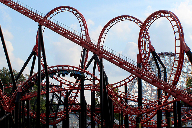 Let's forget about how Ninja rides for a second; doesn't it look totally kick-ass? All black and red, entirely built over the water, the funky geometry of those tall inversions, I dunno, maybe it's just me, but I think it's one very striking piece of work.