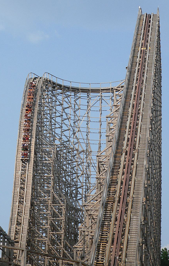 In my experience, this is the best first wooden coaster drop, by a mile. Steep and deep, hellyeah!