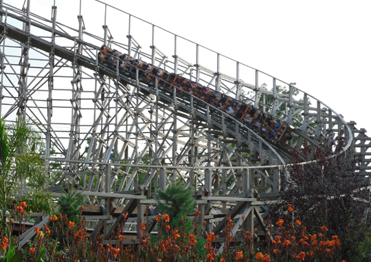 I had never been on one of the Intamin "pre-fab" woodies before, but the raves have been unending and my hopes were sky-high that this would be in my wooden coaster Top Five. It is my Number Two, just a hair behind The Voyage.