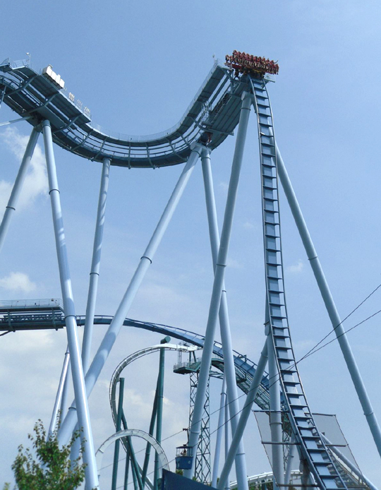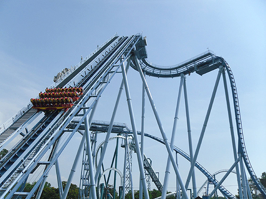 The lift hill is so steep, it's hard to hold your head up to look around. Better to just sit back and try to relax... Hah!