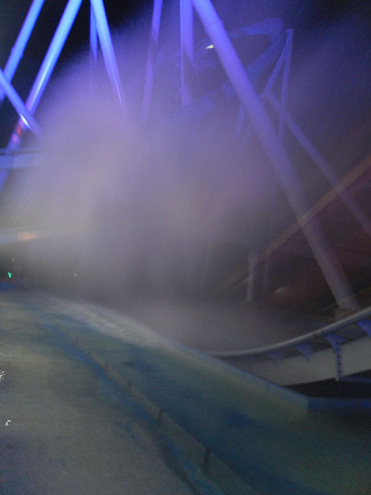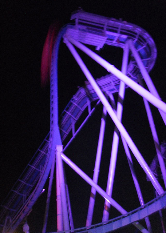 You do get a chance to see how high up y'are while you tool around that elevated turn; it's very high. And then they hold you right over the edge for a good five seconds... OMFG.