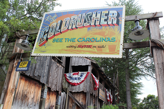 Now we're getting to some rides we did go on, starting with the park's original coaster, Goldrusher, or Carolina Goldrusher, more properly, which was okay, as mine trains go.