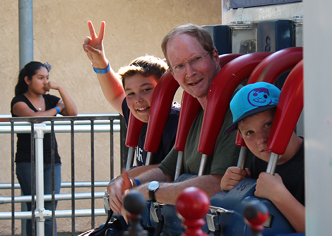 Audrey was kind enough to let the boys ride together. S&S Space Shots, even the base-model 100-footers, are always a blast, figurative and literal.