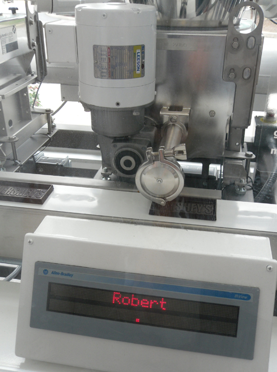 After inputting your candy bar data, it's time to head to "the line," which is all computer-controlled with scanners and "Vibratory Feeders" and other high-techery.