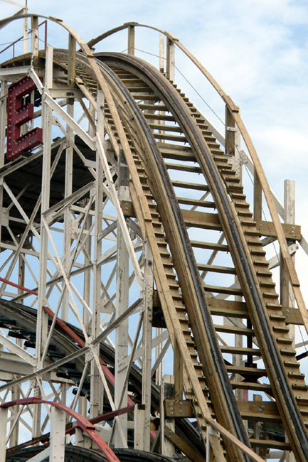 Here's a clear look at the new lumber. Golly, I did love it, and when they complete the years-long program of reworking the entire roadbed, The Cyclone is going to be so much more re-rideable than it is today, even in the back row, I'll wager.