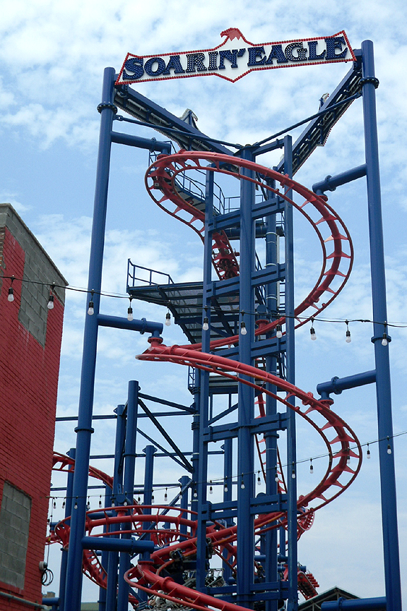 Later in the afternoon, we moseyed back to The Scream Zone. Doesn't that Zamperla Volare coaster look enticing, with the nifty spiral lift and the pretty, bright red curlicues of track? It does, doesn't it?