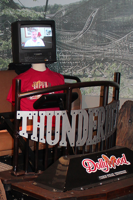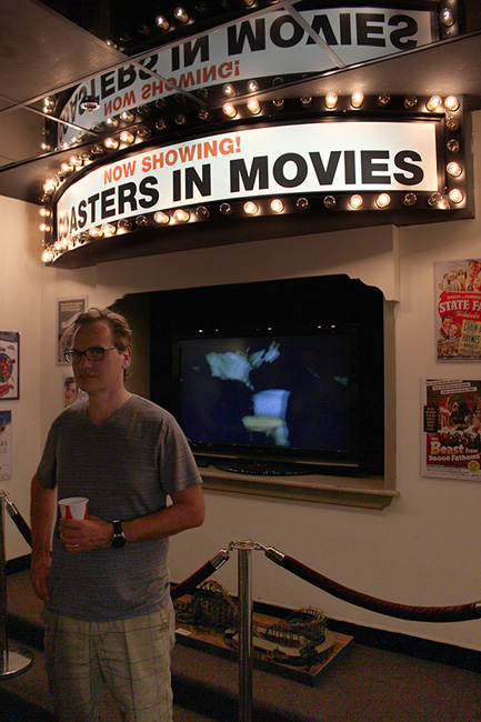 Here's Brent in front of the "Coasters In Movies" video loop. (We didn't stay long enough to see the entire clip collection, but I hope it includes the don't-blink-or-you'll-miss-it Jupiter cameo in "Godzilla vs. Space Godzilla.")