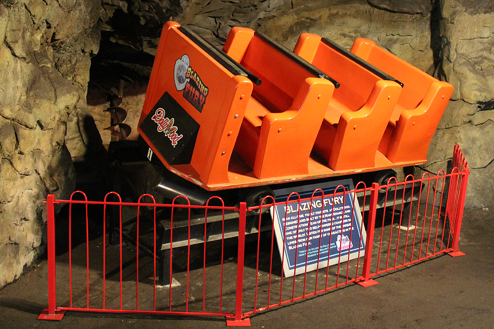 Outside the exhibit, there's a cave-like tunnel that leads to another section of the park and in that tunnel are some more goodies, like this Blazing Fury car...