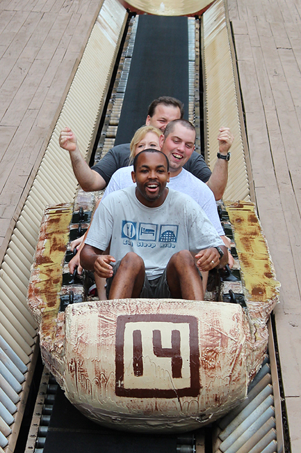 This was another unexpected treat, the Mountain Slidewinder. Sort of in between a water slide and a flume ride, it's a terrain-hugging run in a carved-foam toboggan.