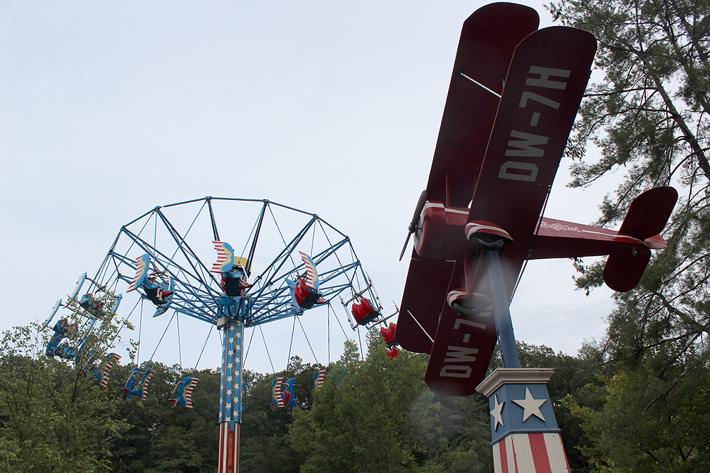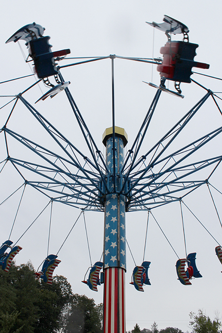 They call it the Sky Rider. Joel and I rode this one together. It's sort of fun and you do get to control the roll and yaw a bit. Kind of tepid, though, compared to Flying Scooters. Maybe if it were taller.