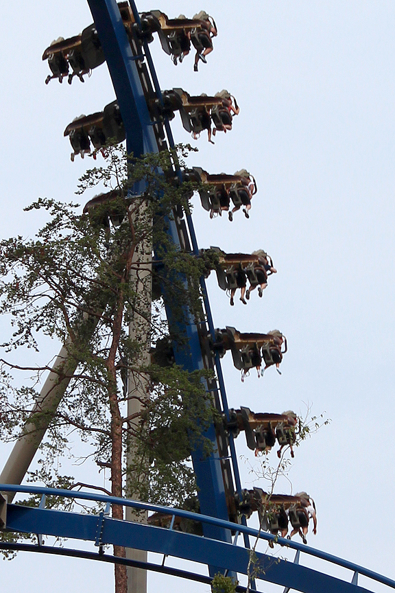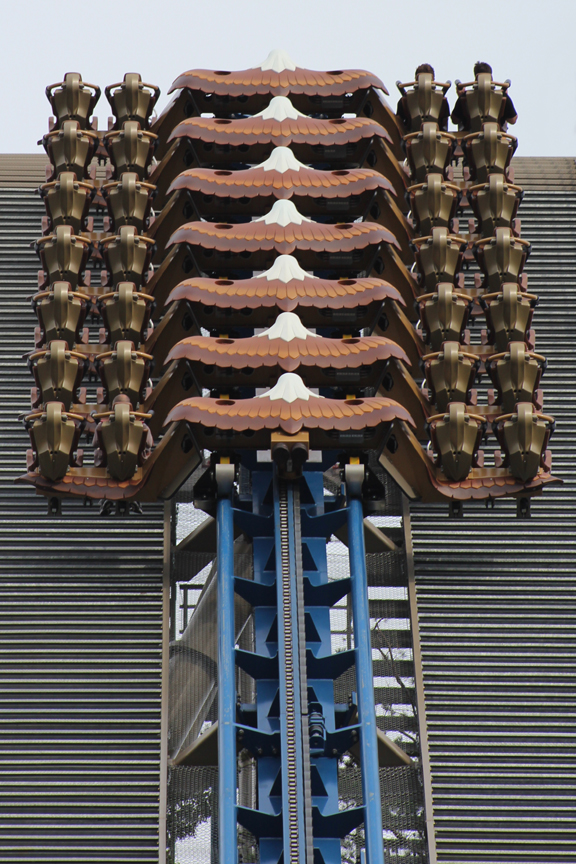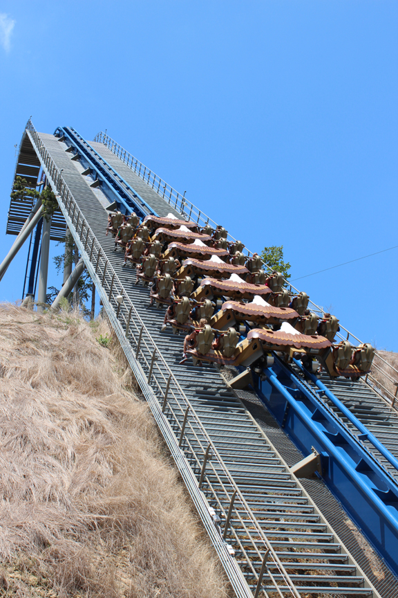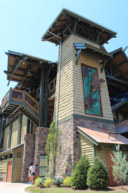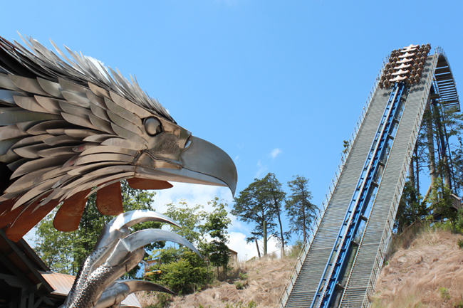 A+ for the way they've positioned the ride into the topography of the park. Placing the lift hill at the bottom of a rise keeps this coaster's strongest feature – the epic beauty of the Smoky Mountains – hidden away until we're ready to fly.