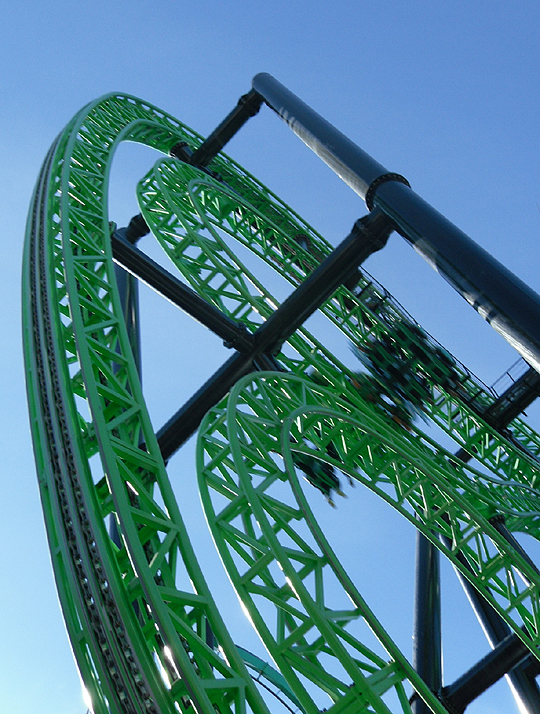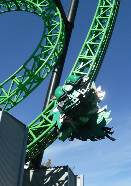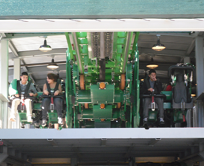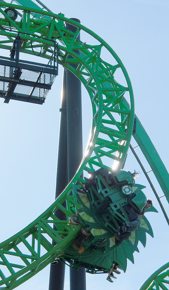 But then Green Lantern opened last year and more than one brother-in-arms told me it was a blast, super-fun, very intense, not sickening, "don't be a schmuck; try it," etc. Best of all, it wasn't being loaded for super-aggressive spinning - bad news for many, but for me, a relief to hear.