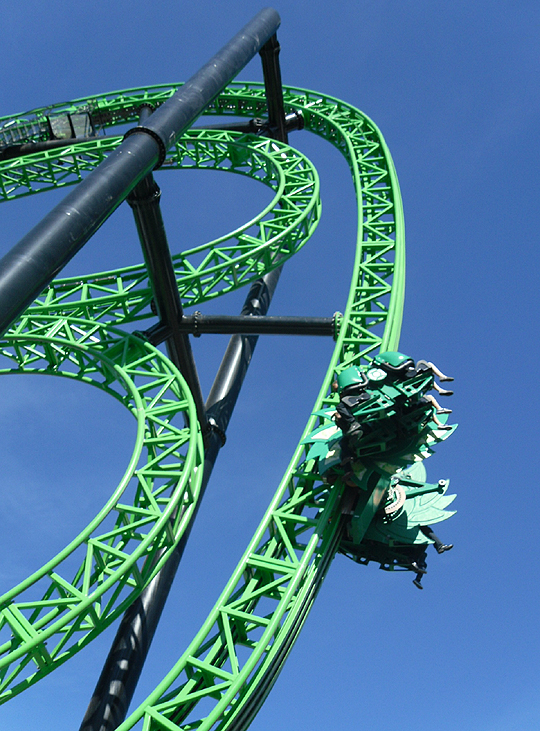 Drop number four, however, is almost guaranteed to flip your wig. Out of the several rides I've taken, I've never done a full 360-degree spin, but have always gotten at least a couple of these "not quite but close enough" maneuvers.