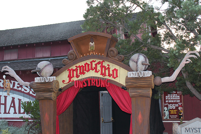 As is related in many of the discussions in these podcasts, front office support for this Haunt was tremendous and it really shows. The level of detail and finish on all the new mazes, and most of the returning mazes, is better than I've ever seen at Knott's, so beautiful. Pinocchio Unstrung is a perfect example; just look at that maze portal! Magnifique!