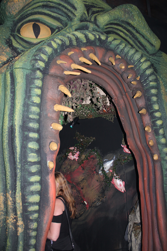 Here's Jenna disappearing into the gullet of some horrible creature.