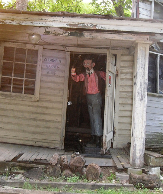 "Damn kids, get offa my lawn!" says Barber Bill. "Don't make me cut ya!"