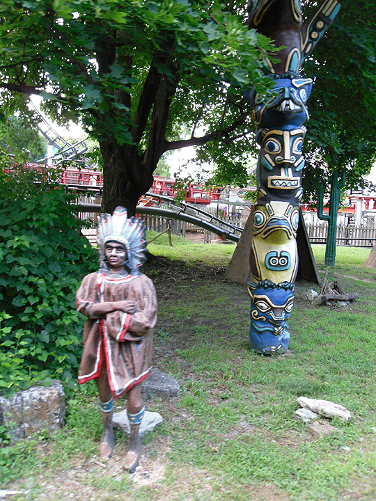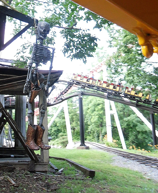 Aaah! Scary skeleton! Nice boots, though. (Not so scary: Trailblazer, the park's mine train. Seriously, the shortest mine train I've ever been on. It's not evil or anything, but really only worth it for the credit whoring or if it's a walk-on.)