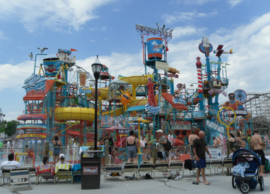 It's worth mentioning that there's this ginormous and very colorful water play area, new since my last visit. We didn't do anything that involved H2O that day, including this, but it looks like a hoot for a really hot afternoon cool-down. Also worth mentioning here: some of our group tried to get on the Roller Soaker, the interactive inverted water coaster, but the long-ish line was moving at a snail's pace and they bailed. Fun ride, but man, it is not a capacity monster.