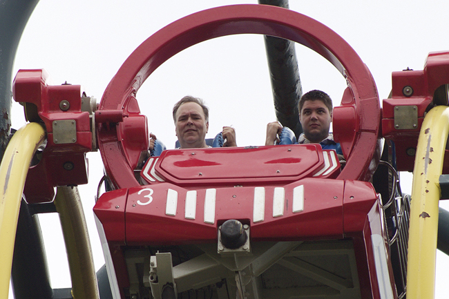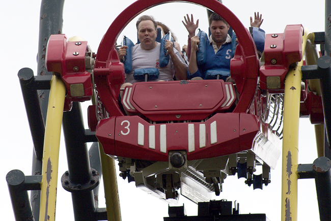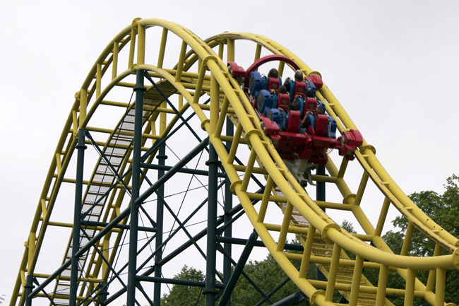 ...and we tear right over this speed bump of a hill. Good stuff, but nothing to distress a seasoned roller coaster enthusiast.