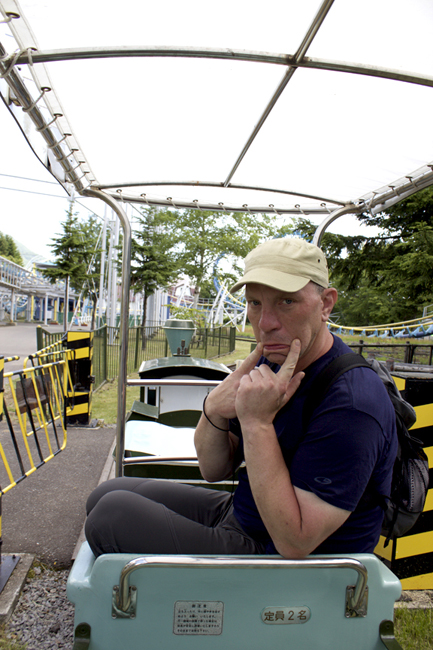 ...because he knows we're going to ride the Corkscrew next. Yes, there's a real Arrow Corkscrew here, and it turns out this model was Japan's first Arrow Corkscrew, which opened in 1977 at Yatsu Yuenchi, a now-closed park in the Chiba Prefecture. It moved to Rusutsu in 1982. And it's kind of rough. But we got through it in one piece.