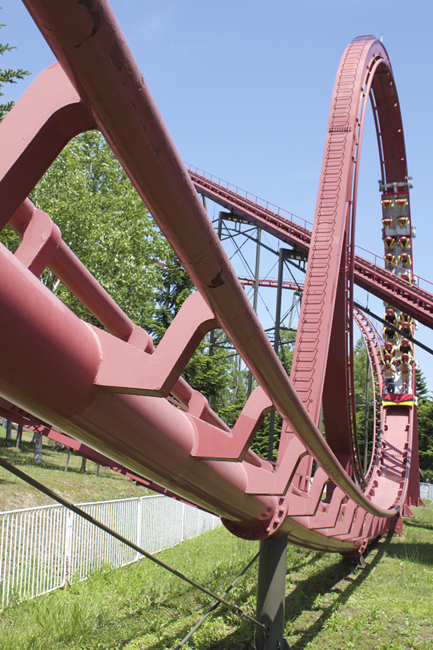 Given the luck we were having throughout Japan, though, I decided to throw caution to the wind once again and ride Togo's single-inversion Standing Coaster. I did think it was cool that the lift hill threaded the loop, especially since its inversion is significantly shorter than the 124-footer that Riddler climbs through.