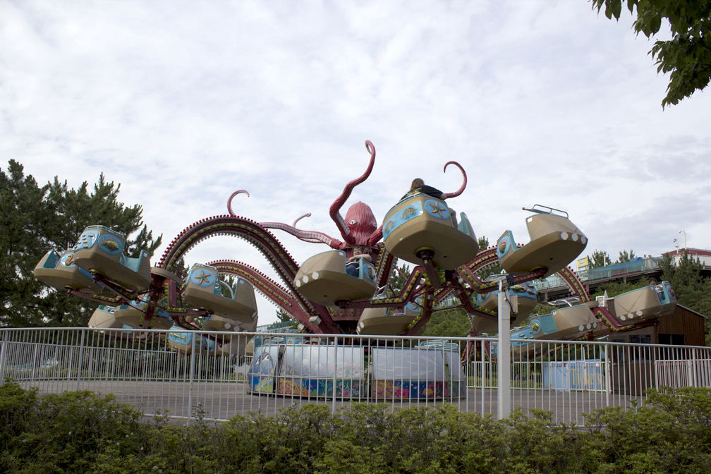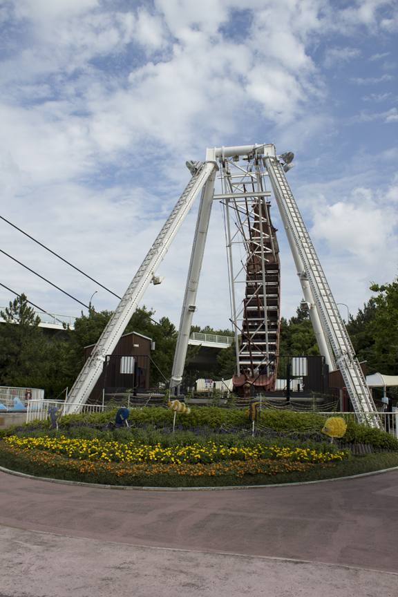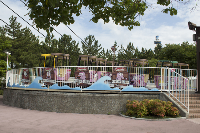 Sea Paradise is not littered with rides, but the park does have a few flats here and there, like this classic Drunken Barrel teacup variant. (Remember when Magic Mountain had one of these?) I don't get the "Courage" tie-in, unless he hits the bottle a lot? Haven't ever watched.