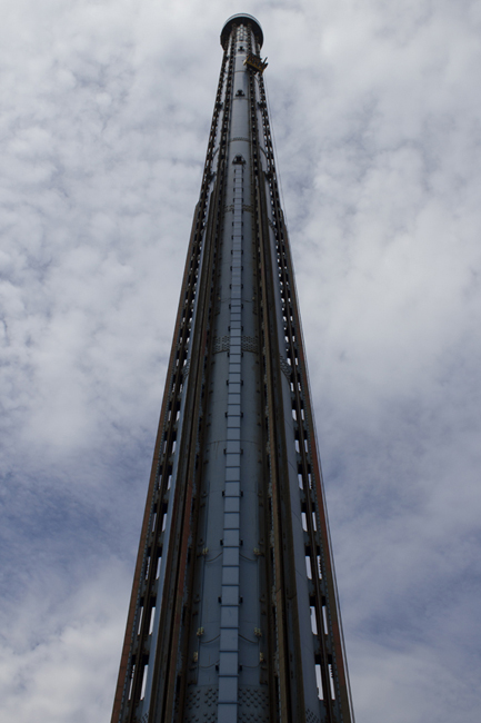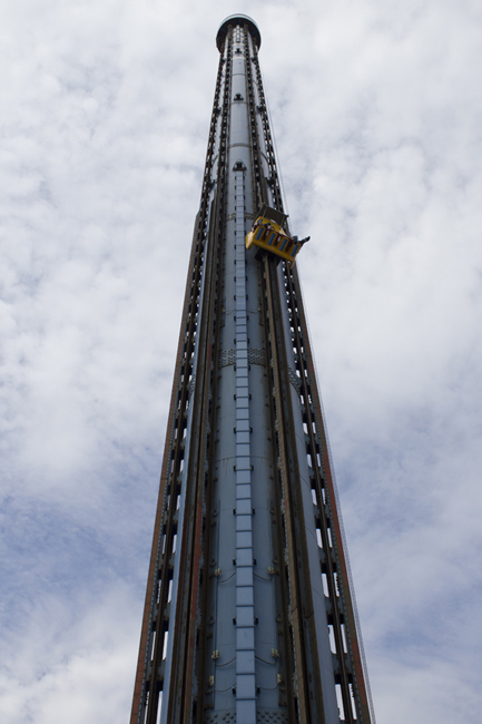 Over the years, I really have chipped away most of my fear of heights. But Blue Fall is so skyscrapingly mammoth (the whole tower tops off above 350 feet), I couldn't be sure it wasn't going to bitch-slap me right back into acrophobic submission.