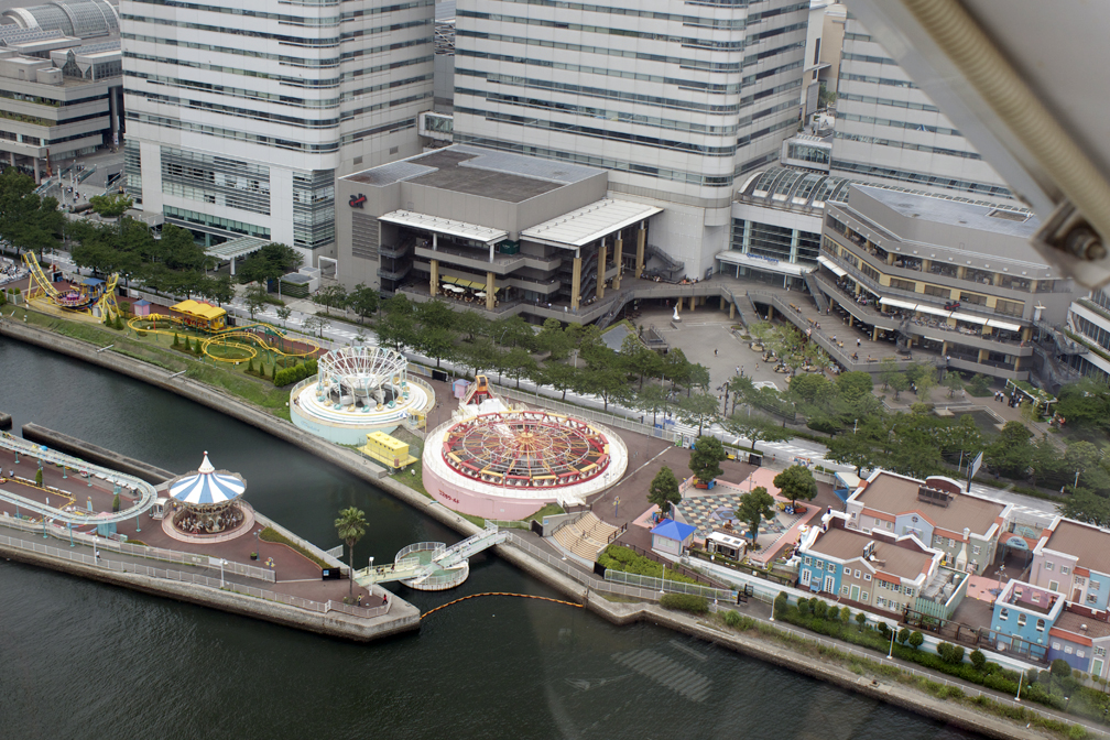 When I could finally hold the camera steady, I took the shot above. My fellow passengers were happy to remind me that Sea Paradise's Blue Fall drop tower, which we'd get to that afternoon, was nearly as tall as this wheel. They all had quite a chuckle over my Tourette-style cursing during some of this experience, the heartless bastards.