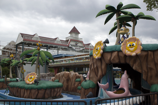...with the happy flowers, and happy monkeys and... pink dolphins. This detail did not seem odd at the time; it would later. (We'll get to Fantastic Coaster Rowdy in a bit.)