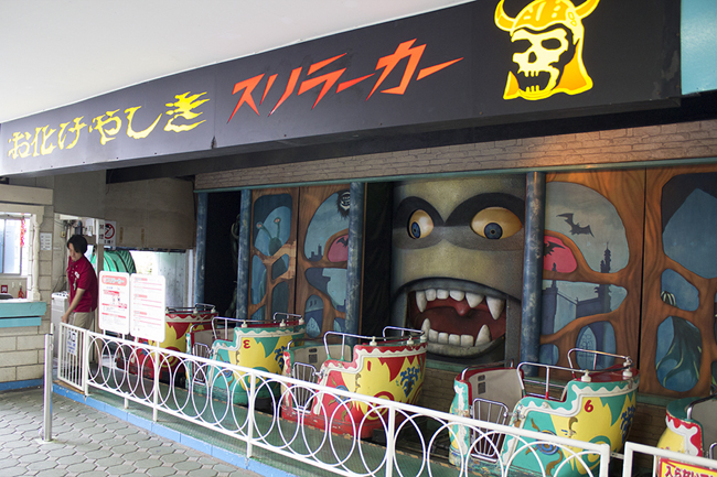 Hanayashiki has more than one scary attraction and for a park so small, that is simply miraculous. Best of all, one of them is really, really good. Thriller Car is not the good one. But I'm of the opinion that there are no truly ugly babies and there are no truly bad dark rides. Even the "bad" ones are a hoot, and when they are "bad" and in Japanese, well, you've got something special. Thriller Car is, indeed, special.