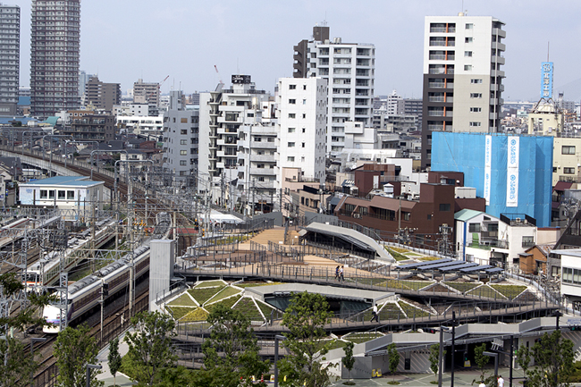 Had a cup of Joe while relaxing in the plaza at the Skytree's base. One end of the plaza overlooked this nifty-looking park of some kind. I thought the triangular grass panels had a bit of a Logan's Run vibe.