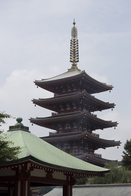 I wish I knew what sort of sacred object this thing was, but behind it is the Asakusa Shrine, or "Shrine of the Three Gods," in honor of the three men who founded the Senso-ji Temple. This shrine is right next to the Temple grounds.