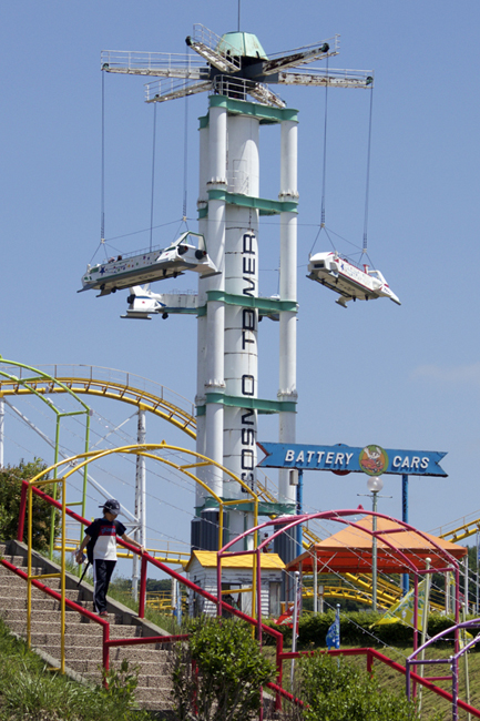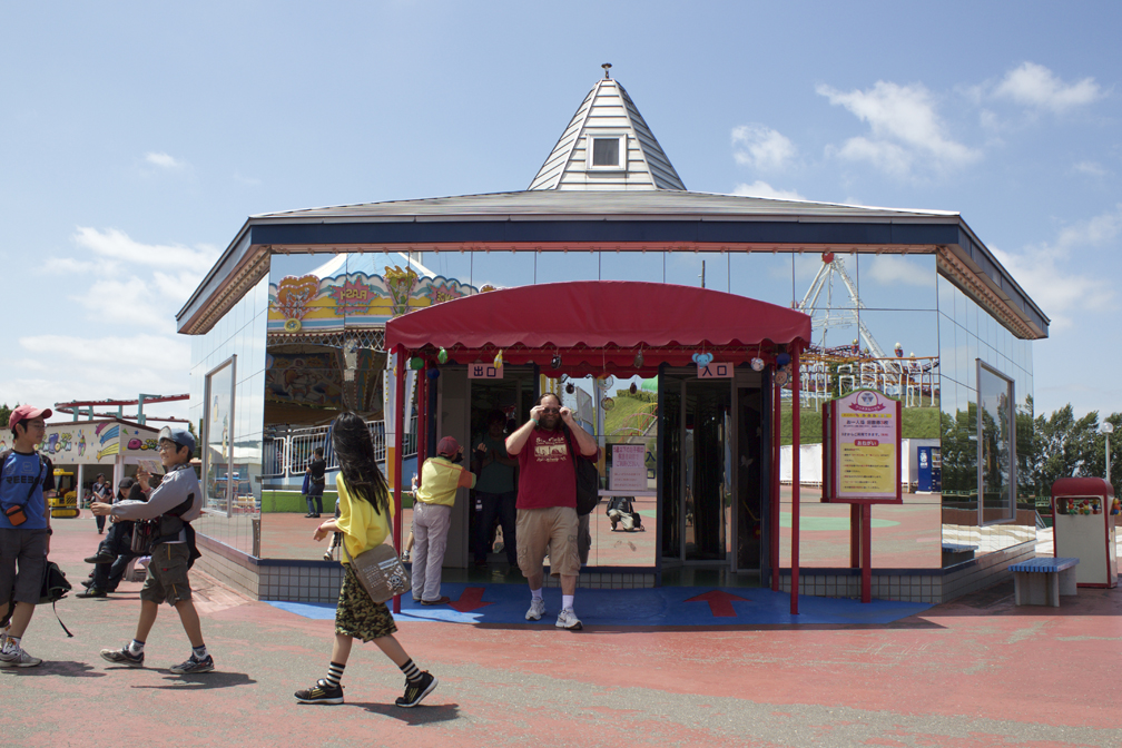 This is Greenland's other mirror maze and it has an "under the sea" theme going on. But that's not what makes it awesome. The coolest thing about this maze is that it there are "Easy" and "Hard" settings. We went through once, pretty quickly, and then the attraction hostess, seeing that there were no munchkins waiting to get in, asked us if we wanted to try the more challenging version. She hit a switch, or pulled a lever, or whatever, and it moved panels around, and dimmed the lights, I think, too? And sure enough, it was harder. That was mildly ingenious, I thought. Go, Japan!