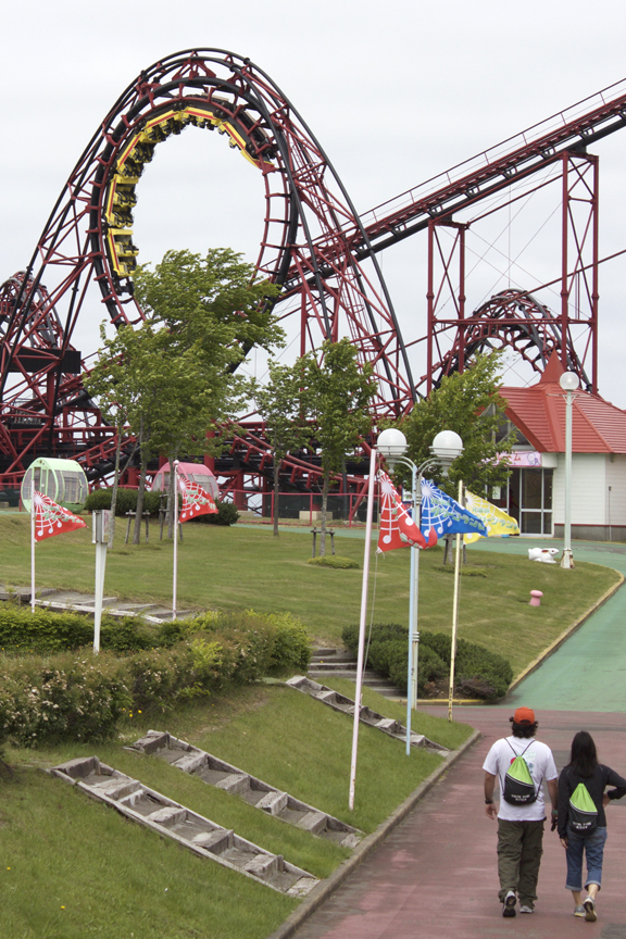 Even more in the spirit of Arrow is Greenland's second major credit, Dragon King, a Senyo "Loopscrew." (See, there are some more of the retired wheel cabins along the walkway on the left...)