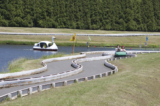 We didn't ride the go-kart track under GO-ON, but we did motor around the track that circumnavigated a lake at the far end of the park.