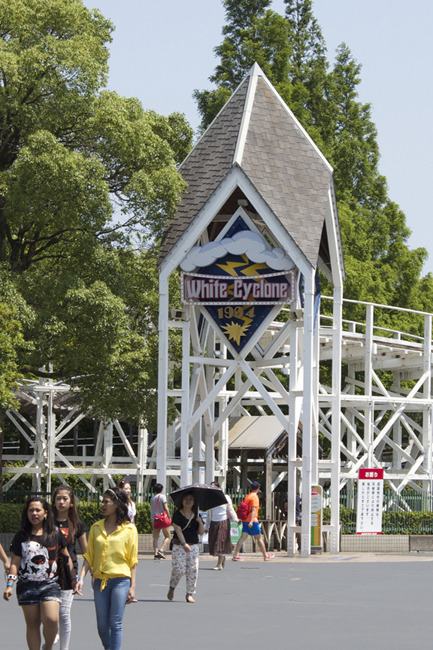 For the Steel Dragon taping, they only needed one full train of riders on standby, so Elissa led the rest of us over to White Cyclone, Japan's largest woodie and still one of the largest of its kind anywhere.