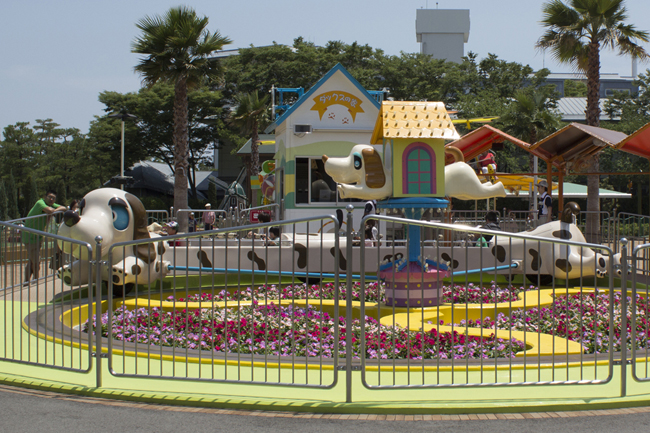 Spaland's kiddie area is really well done, bright and colorful, and so clean you could drop food anywhere, pick it right up, and eat it without worry. There's a credit here, the Peter Rabbit Coaster, which is very cute, and bless the Japanese for treating this classic Beatrix Potter character with that kind of respect. For god knows what reason, I did not take a picture of the Peter Rabbit Coaster, but I did snap the barking doggie going in a circle ride, because now I'm a little obsessed with them. |