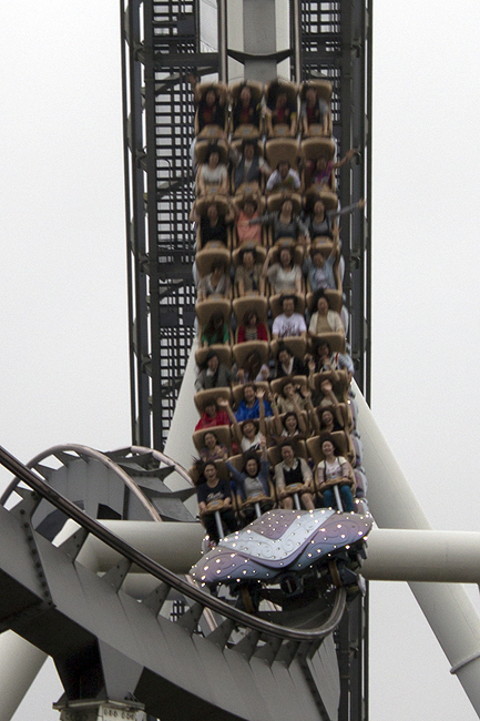 Going backwards on a roller coaster for more than a little bit doesn't really appeal much to me. Shuttle coasters are awesome, and some full-circuit attractions that have a section of reverse travel – like the Revenge of the Mummy rides – are among my favorites. When the whole thing goes bass-ackwards, though, I'm sort of queasy and grumpy by the time it's over. And: this Bolliger & Mabillard layout didn't look very exciting anyway.