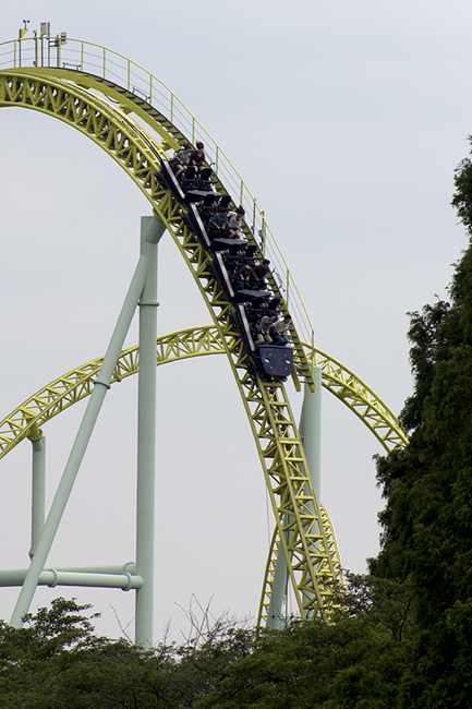 By modern standards, Kawasemi is a wee morsel. Its highest point is just above 100 feet, and you travel less than 2,500 feet from lift hill to brake run.