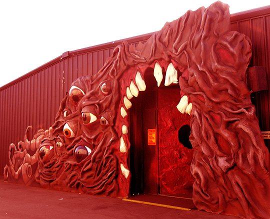 Cornstalkers: Here's another maze that is improving year after year. There are some interesting "interior" scenes, but the best stuff happens in the very narrow rows of corn, where things can come at you from almost anywhere - very atmospheric and claustrophobic. Plus, scary scarecrows are scary. And the Boss Monster is bitchin'. I hope they keep Cornstalkers around for awhile longer... because it shucks me up. (I kill me.)