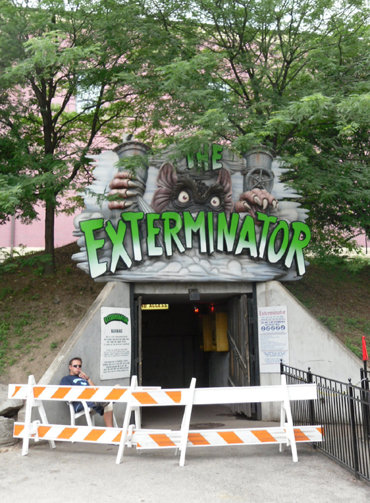 I coudn't wait to get on The Exterminator again. This Spinning Mouse-In-A-Box dark ride/coaster is so much fun, it's insane.