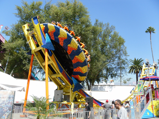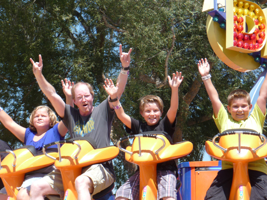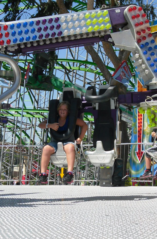 Not the kids, however. Here's Audrey, ready to get her G-force on. They were all a bit dizzy afterwards, but still chipper. Hardcore!