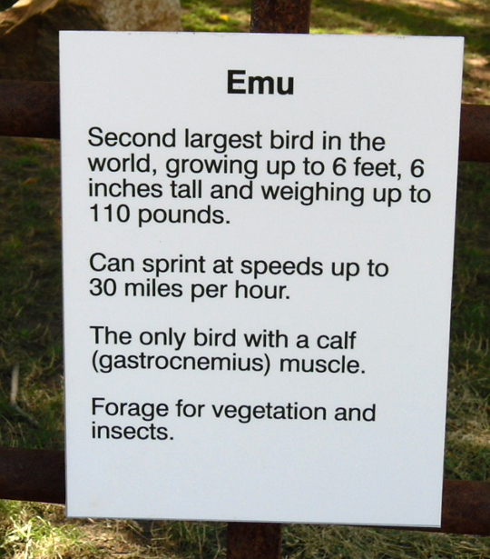 Emu fun factz! That calf muscle thing is cool. Had no idea.