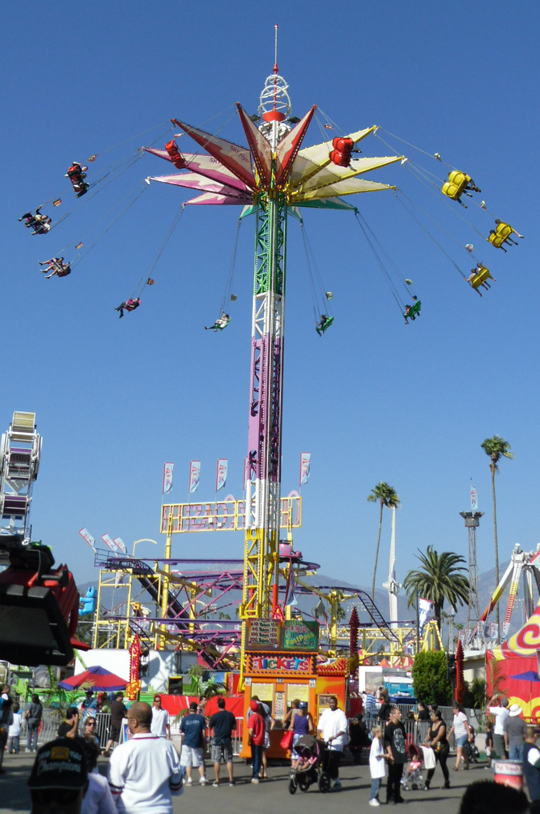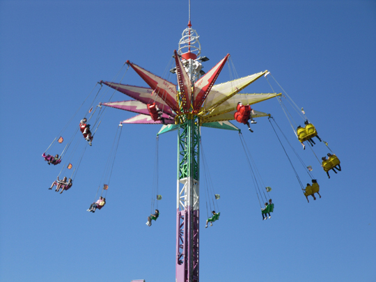 Man, I really didn't want to do this. Those little seats, held by those flimsy looking chains, spinning round and round, way up there... You put me in a tight harness and I'm good to go on any freefall ride. But this? I could easily see having a full-bore panic attack before we even got to the max. height.