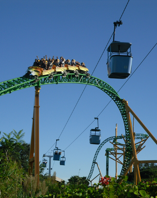This much should be clear by now to those who know me: I'm a total launch-slut. One is great. Two, a special kind of wonderful. But three, in one coaster? You're killing me. And Cheetah Hunt is about so much more than those launches. Like the Sky Ride leap.