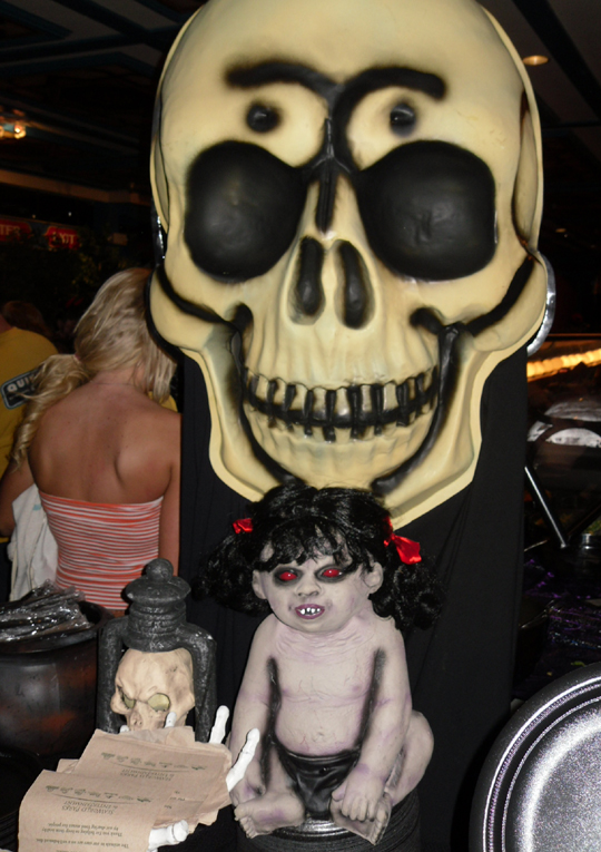 After the meal, there was a show, which was okay. There was a "Sarah Palin" in it, as there was in the Bill and Ted show at Uni. Both Palins were pretty hot. (Again, for more detail on the two haunt nights, please listen to the Season Pass 2011 "Halloween Madness" podcast.)